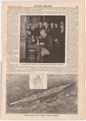 Unidentified. Alexander Graham Bell Inaugurating the New York to Chicago Telephone Line, 1892. Scientific American, November 5, 1892.